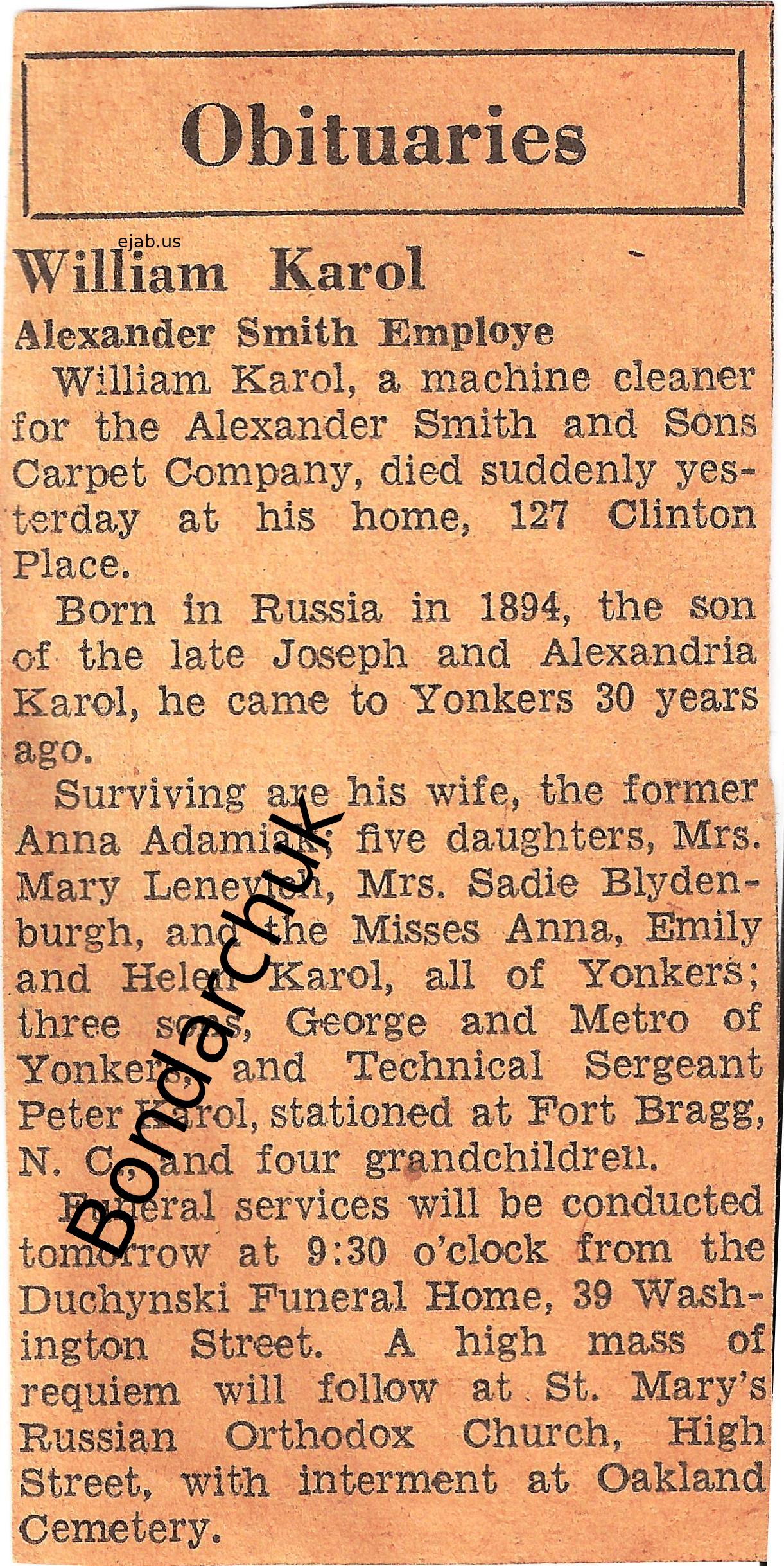 Emily Karoll Birth: January 2, 1923 29 32 — Yonkers NY Death: November 14, 1996 |